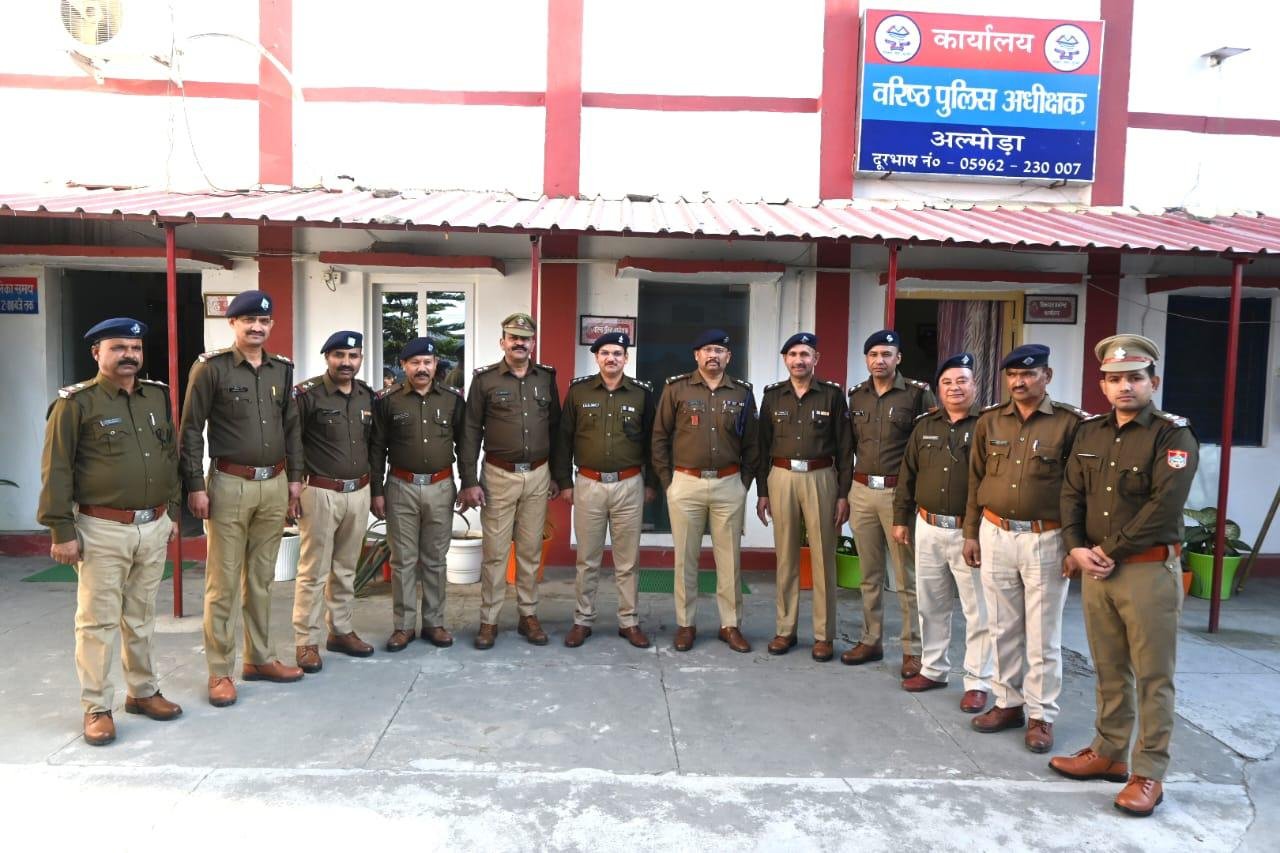 आज दिनांक- 02.01.2026 को देवेन्द्र पींचा, एसएसपी अल्मोड़ा द्वारा गोपाल दत्त जोशी व पेशकार उ0नि0 श्री दान सिंह मेहता की उपस्थिति में पुलिस मुख्यालय देहरादून द्वारा जारी पदोन्नति आदेश पर हेड कानि0 आनन्द सिंह राणा, हेड कानि0 प्रताप सिंह, हेड कानि0 कैलाश चन्द्र,हेड कानि0, फिरोज खान,हेड कानि0 सुरेश चन्द्र आर्या, हेड कानि0 मुजम्मिल हुसैन, हेड कानि0 चन्द्र प्रकाश, हेड कानि0 कैलाश चन्द्र, हेड कानि0 जगदीश सिंह बोहरा, हेड कानि0 महेन्द्र सिंह अधिकारी को अपर उपनिरीक्षक ना0पु0 में पदोन्नति होने पर अलंकरण से अलंकृत कर बधाई देते हुए अग्रिम दायित्वों व उज्जवल भविष्य के लिए शुभकामनाएं दी गई।