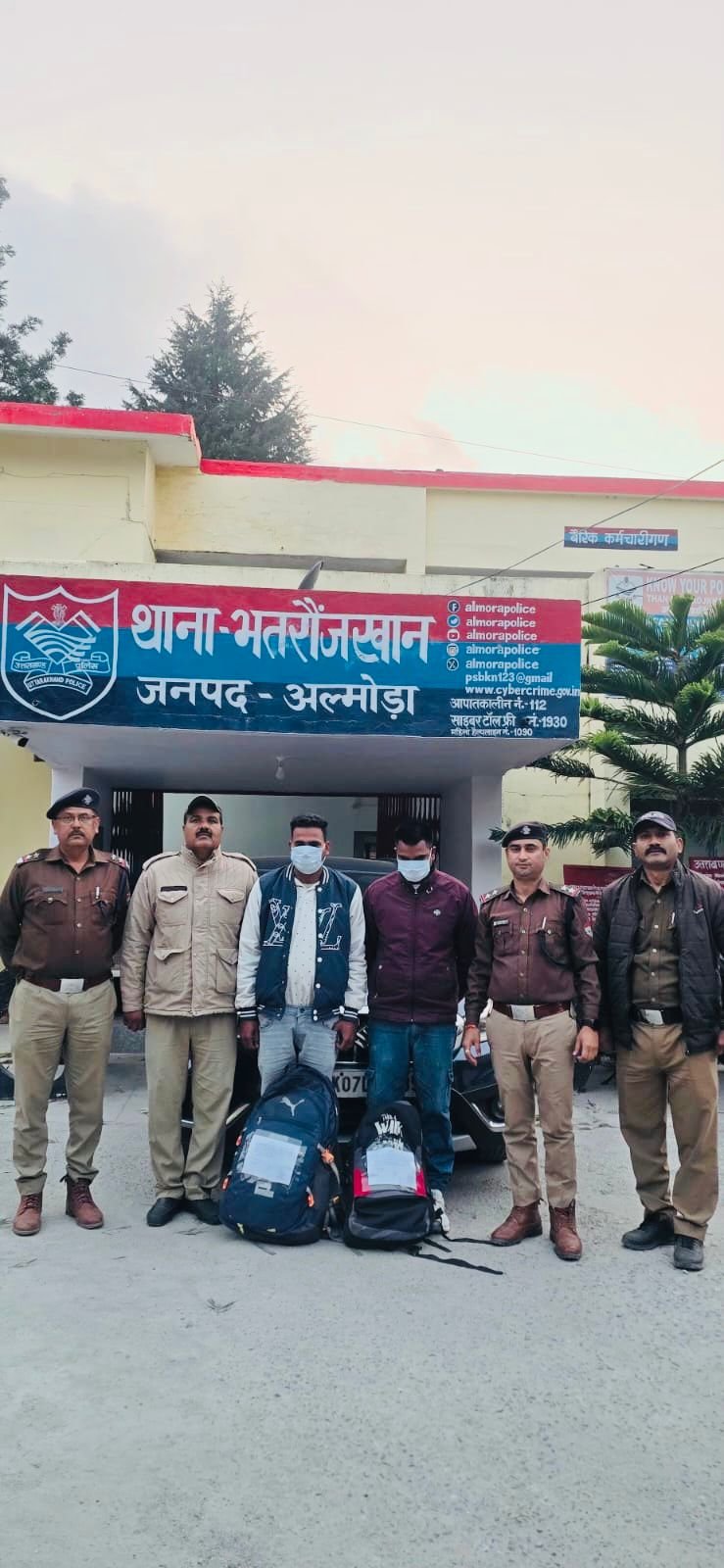 अपर पुलिस अधीक्षक हरबन्स सिंह के मार्गदर्शन में सीओ रानीखेत विमल प्रसाद के पर्यवेक्षण में थानाध्यक्ष भतरौजखान श्री अवनीश कुमार के नेतृत्व में दिनांक 06.03.2026 को प्रभारी चौकी भिकियासैंण उ0नि0 श्री संजय जोशी मय पुलिस टीम द्वारा चेकिंग के दौरान चौकी भिकियासैंण तिराहे पर एस-क्रॉस मारुति कार संख्या- UK07-DG-6485 को चैक करने पर वाहन में सवार 02 युवक बिल्ला सिंह व सतीश कुमार के कब्जे से कुल 10.25 KG अवैध गांजा बरामद किया। दोनो अभियुक्तों को गिरफ्तार करते हुए थाना भतरौजखान में FIR NO- 03/2026 धारा 8/20/60 एनडीपीएस एक्ट के तहत मुकदमा पंजीकृत कर आवश्यक कार्यवाही की गई। वाहन को सीज किया गया।