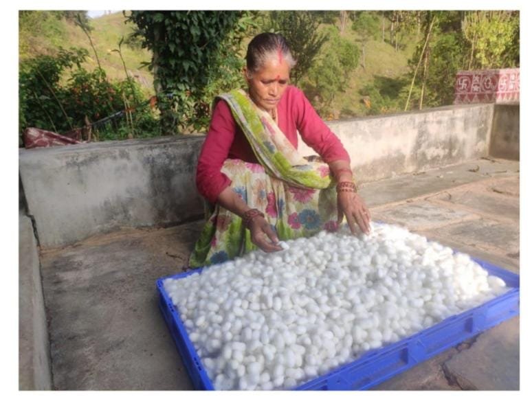 रेशम उत्पादन से आत्मनिर्भर बनीं ग्राम दशौली की चम्पा देवी।