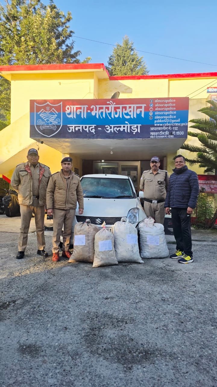 अपर पुलिस अधीक्षक हरबन्स सिंह व सीओ रानीखेत विमल प्रसाद के पर्यवेक्षण में निरीक्षक भुवन जोशी, प्रभारी एसओजी व थानाध्यक्ष भतरौजखान श्री अवनीश कुमार के नेतृत्व में प्रभारी चौकी भिकियासैंण संजय जोशी मय पुलिस टीम व एसओजी की संयुक्त टीम द्वारा आज दिनांक 12.10.2025 की तड़के रामनगर रोड पीलीकोटी के पास चेकिंग की जा रही थी, इस दौरान वाहन संख्या- DL-5-CF-9911 स्विफ्ट कार को रुकने का इशारा किया गया तो चालक तेजी से कार को भगा ले गया शक होने पर पुलिस टीम ने कार का पीछा किया। चालक छोटी घट्टी तिराहे से 100 मी0 पहले कार को छोड़कर अंधेरे का फायदा उठाकर फरार हो गया। कार की तलाशी ली गई तो कार से 04 कट्टो में कुल 54.378 कि0लो0 अवैध गांजा बरामद हुआ। जिस पर अज्ञात फरार कार चालक के विरुद्ध थाना भतरौजखान में मु0अ0स0-29/2025 धारा 20/60/8 एनडीपीएस एक्ट के तहत एफआईआर पंजीकृत कर आवश्यक कार्यवाही की गई। फरार अभियुक्त की गिरफ्तारी के प्रयास किये जा रहे है।