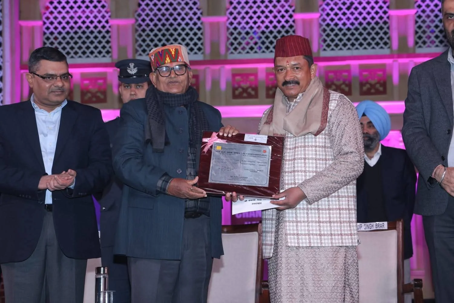 अल्मोड़ा शहर के वरिष्ठ लोककलाकार संस्कार सांस्कृतिक एवं पर्यावरण संरक्षण समिति के निदेशक प्रकाश सिंह बिष्ट को उत्तर क्षेत्र सांस्कृतिक पटियाला द्वारा आयोजित 15 वे राष्ट्रीय शिल्प मेले में पंजाब के राज्यपाल महामहिम श्री गुलाब चंद कटारिया जी के हाथों से लोक कला साधक सम्मान 2025 से सम्मानित किया गया। जिसमें उनको रजत पट्टिका तथा 250000/ रुपए की पुरस्कार राशि दी गई।यह सम्मान लोक कला के क्षेत्र में उत्कृष्ट कार्य करने वाले लोकलकारों को दिया जाता है।प्रकाश सिंह बिष्ट विगत 40वर्षों से उत्तराखंड की लोकसंस्कृति को राष्ट्रीय व अंतर्राष्ट्रीय स्तर पर प्रदर्शित करते आ रहे है।इससे पहले भी उनको कई लोक कला सम्मान से नवाजा गया है।यह पल उत्तराखंड के लिए गर्व का पल है।प्रकाश बिष्ट जी पहले उत्तराखंड के लोककलाकार है जिनको सबसे पहले लोक कला साधक सम्मान 2025 से सम्मानित किया गया है। प्रकाश बिष्ट ने यह पुरस्कार अपनी माता जी को समर्पित किया। जिनका इसी वर्ष सितंबर माह में निधन हो गया था।