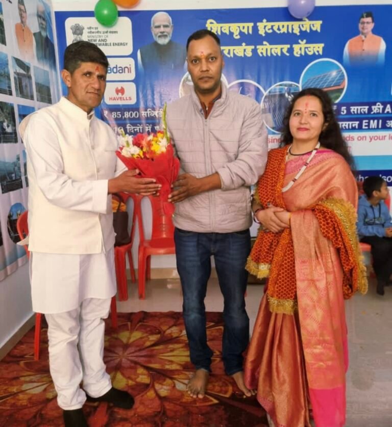 साथ ही अपनी आमदनी भी बढ़ा सकते हैं। बताया सरकार की ओर से दी जा रही सब्सिडी का भी लाभ उठा रहे हैं। उन्होंने बताया कि सोलर प्लांट लगाने के लिए उपभोक्ता 8477061071 नंबर संपर्क कर बुकिंग कर सकते है। यहां उद्घाटन में देवभूमि उद्योग व्यापार मंडल जिलाध्यक्ष मनोज सिंह पवार, राजेंद्र बिष्ट, व्यापार मंडल नगर महासचिव दीप चंद्र जोशी, उत्तराखंड प्रेस क्लब उपाध्यक्ष कमलेश कनवाल, पवन नगरकोटी, दीपक भट्ट, अखिलेश भट्ट, भरत मेहरा हिमांशु नैनवाल, राहुल दानु, ललित बिष्ट समेत बड़ी संख्या में लोग मौजूद रहे।